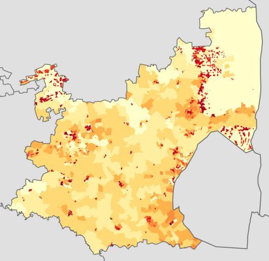 Keywords: Mpumalanga 2011 population density map.svg ffffcc <1 inhabitant/km² ffeda0 1 “3 inhabitants/km² fed976 3 “10 inhabitants/km² feb24c 10 “30 inhabitants/km² fd8d3c 30 “100 inhabitants/km² fc4e2a 100 “300 inhabitants/km² e31a1c 300 “1000 inhabitants/km² bc0026 1000 “3000 inhabitants/km² 800026 >3000 inhabitants/km² Projection is Albers Equal-Area Conic with standard parallels at 25 5° S and 31 5° S and origin at 28 5° S 25 5° E Statistics South Africa's Census 2011 is the source of the basic population data The map results from my own processing of the data Htonl 2013-10-22 http //beta2 statssa gov za/ page_id 425 The following license applies to the population data on which the map is based the user acknowledges Stats SA as the source of the basic data wherever they process apply utilise publish or distribute the data and also that they specify that the relevant application and analysis where applicable result from their own processing of the data The following tag applies to the map itself Demographic maps of South Africa Maps of Mpumalanga |