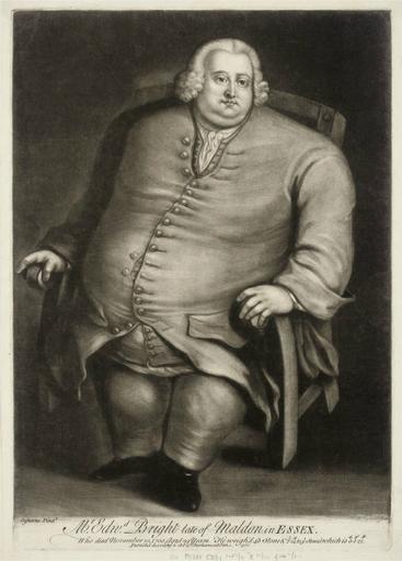 Keywords: Mr Edward Bright late of Maldon in Essex.png en Portrait of Edward Bright Fat man of Maldon 1721 “1750 mezzotint on laid paper published by J Bowles 1750 unframed S 14½ × 10 3/8in 36 8 × 26 3cm 1750 http //www christies com/lotfinder/prints-multiples/james-mcardell-after-david-ogbourne-mr-5179153-details aspx James Mcardell 1729 “1765 after David Ogbourne <gallery>Image Edward Bright jpg</gallery> PD-old-100 Uploaded with UploadWizard Edward Bright Obese men 1721 births 1750 deaths |