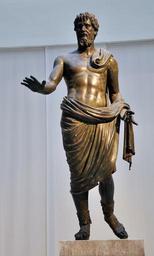 Keywords: MRAH Statue d'empereur Rome 261211.jpg fr Statue en bronze d'empereur romain époque antique découverte à Rome sur le Janicule en 1643 tête et bras droit manquant et restaurée en Septime Sévère en 1667 par Paolo Naldini Musées Royaux d'Art et d'Histoire MRAH Parc du Cinquantenaire Bruxelles Bronze statue of a roman emperor found in 1643 in Rome The lacking head and the right arm were restaured by Paolo Naldini in 1667 so the statue became a portrait of Septimius Severus Royal Museums of Art and History MRAH Jubilee Park Brussels 2011-10-02 own Vassil Cc-zero Collection of Antiquity Jubilee Park Museum Ancient Roman statues in Belgium Ancient Roman bronzes in Belgium 1643 events Paolo Naldini Sculptures of Septimius Severus 1667 events Ancient Roman bronze statues