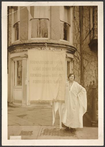 Keywords: Mrs. Jessie Hardy MacKaye 160027v.jpg Summary Photograph of Jessie Hardy MacKaye with banner in front of Congressional Union for Woman Suffrage building Banner reads Forward Out of Error Leave Behind the Night Forward through the Darkness Forward Into Light 1 photograph print 7 x 10 in accession number Call Number Location National Woman's Party Records Group I Container I 160 Folder Pickets 1917 Source Collection Records of the National Woman's Party institution Library of Congress Manuscript Division http //hdl loc gov/loc mss/mnwp 160027 PD-1923 PD-Harris-Ewing suffragettes |