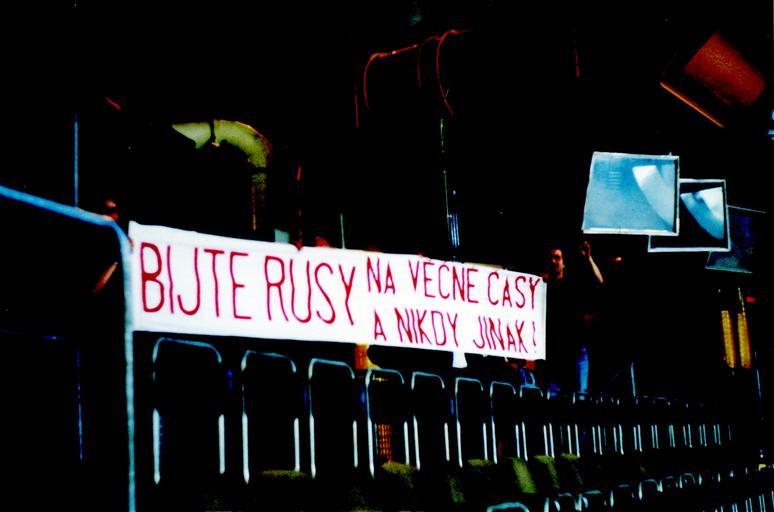 Keywords: Ms hokej 1983a.jpg en During the 1983 hockey world championships in Munich Germany Czech emigrants are showing a transparent protesting against the Russian occupation of their country since the suppression of the Prague Spring de Tschechische Emigranten zeigen beim Spiel der Tschechoslowakei gegen die Sowjetunion bei der 1983er Eishockey-Weltmeisterschaft in München ein Transparent mit dem sie gegen die Besetzung ihres Landes durch sowjetische Truppen seit der Niederschlagung des Prager Frühlings protestieren Antonín Tichov Antonín Tichov 1983-04-30 Ms_hokej_1983b jpg 1983 IIHF World Championship Photographs taken on 1983-04-30 Ice hockey supporters |