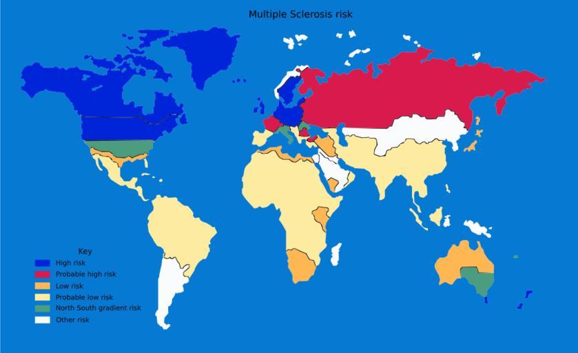 Keywords: MS Risk.svg en This slide shows the global prevalence of multiple sclerosis Based upon http //en wikipedia org/wiki/Image MS_Risk jpg Own Dekoder 2009-06-11 MS Risk no legend svg Multiple sclerosis SVG files on neurology