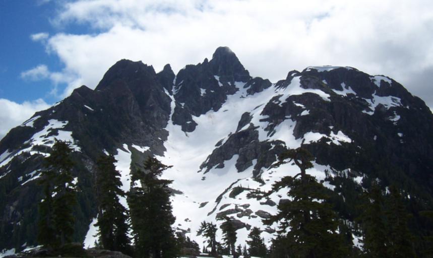 Keywords: Mt Septimus.png en Mount Septimus NW aspect Photo taken from near Cream Lake The thin line of vertical snow in the middle of the picture is the standard route to the summit It is often refered to as the X-gullies Own Fraser harris 2006-07-15 Vancouver Island Ranges Strathcona Provincial Park |