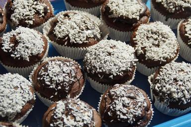 Keywords: muffins schokomuffins delicious confectionery calories treat sweet pastries small cakes sweetness children delicacy benefit from saje candy schokoladenmuffins tart coconut flakes strewn birthday cake fine pastry brown