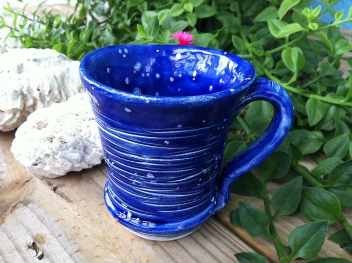 Keywords: mug coffee tea coral blue carved pottery ceramics earthenware ceramic earthen material fragile cup glaze cobalt