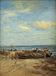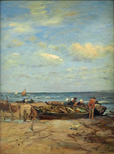 Keywords: Mühling Fischer bei ihren Booten@Albert König Museum20160904.jpg Artwork Creator Hugo Mühlig unknown oil canvas Institution Albert-König-Museum Unterlüß accession number Aus der Sammlung der Dr Axe-Stiftung Bonn photographer and uploader was Hajotthu at http //de wikipedia org de wikipedia PD-old-auto 1929 Hugo Mühlig Paintings in the Dr Axe-Stiftung Albert-König-Museum Unterlüß Painting of the Dusseldorf painter's school |