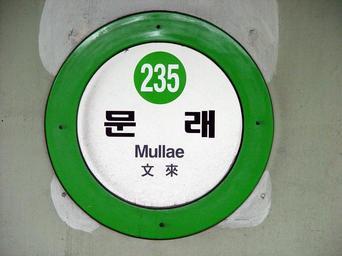 MAKE A MEME View Large Image Mullae Station Supporting Column Sign.JPG Mullae Station sign on a supporting column Own 2007-11 Jpbarrass Mullae Station Train station signs in Seoul Subway line 2