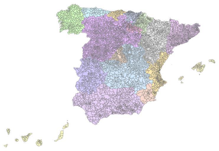 Keywords: Municipalities of Spain.svg Osuna Sevilla Municipal map of Spain Mapa municipal de España self-made from data of the National Statistics Institute 2004 Tony Rotondas public domain Maps of municipalities of Spain SVG maps of Spain