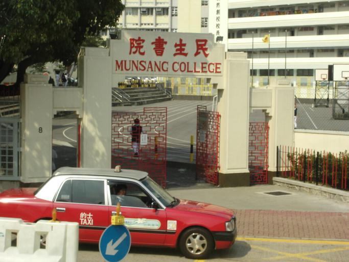 Keywords: Munsangentrance.JPG 2006-11-07 own assumed Pp20120912 Munsang College Dumbarton Road Hong Kong Red taxis in Hong Kong