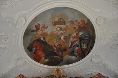 | Keywords: Münsterlingen Klosterkirche A101 Anbetung des Lamms.jpg Münsterlingen ehemalige Klosterkirche St Remigius Deckengemälde von Jacob Carl Stauder 1722 Anbetung des Lammes der Geheimen Offenbarung Onken Nr A101 Rundbild im Altarhaus über dem Hochaltar ; Secco-Technik kein Fresko own own photograph 2014-05 Creator Jacob Carl Stauder Photo Andreas Praefcke Photos by User AndreasPraefcke Ceiling paintings in St Remigius Münsterlingen 1722 paintings Adoration of the lamb | ||||