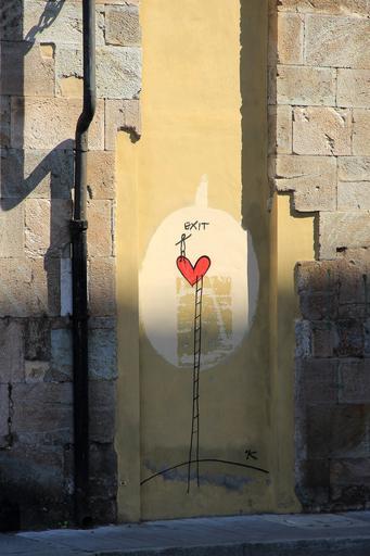 Keywords: mural graffiti output way out symbol hauswand heart head comic graphic