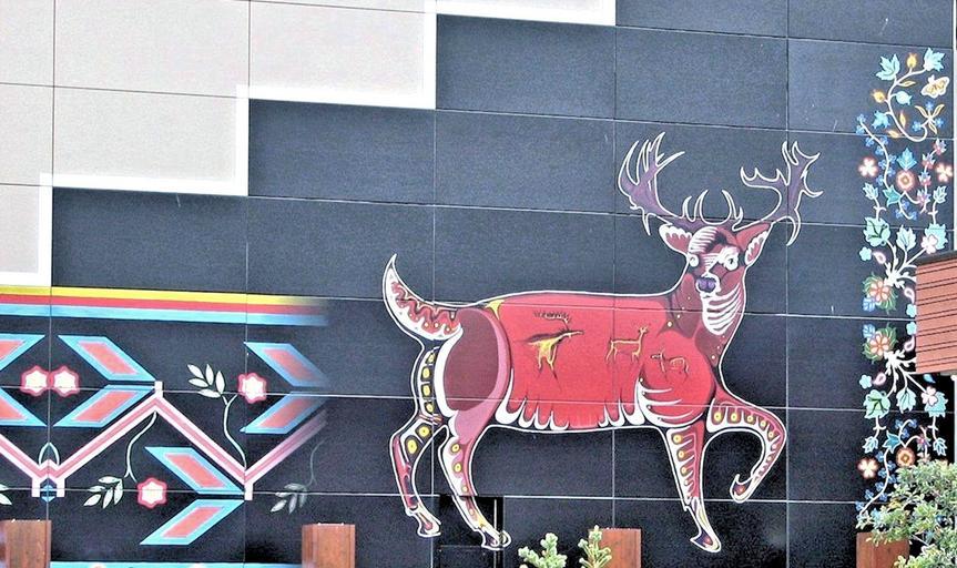 Keywords: mural native indian art caribou building art painting canada