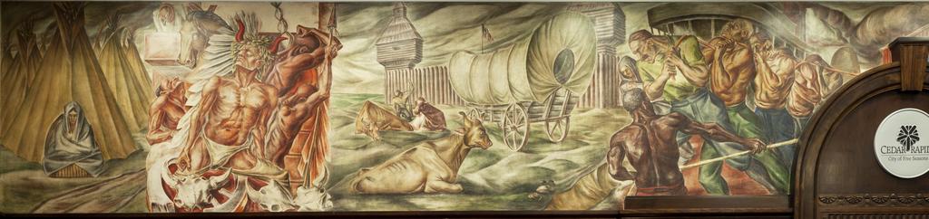 Keywords: Mural "Opening of the Midwest," by Robert Francis White at Federal Building & U.S. Courthouse, Cedar Rapids, Iowa LCCN2013634463.tif 1 photograph digital tiff file color Notes Gift; Carol M Highsmith; 2009; DLC/PP-2009 083 ; Photographed as part of an assignment for the General Services Administration ; Title date and keywords from information provided by the photographer ; Date 1937; medium tempera ; Forms part of Photographs in the Carol M Highsmith Archive ; Credit line Photographs in the Carol M Highsmith Archive Library of Congress Prints and Photographs Division 2011 Creator Carol M Highsmith Library of Congress Catalog http //lccn loc gov/2013634463 Image download https //cdn loc gov/master/pnp/highsm/24900/24903a tif Original url http //hdl loc gov/loc pnp/highsm 24903 No known restrictions on publication LOC-image highsm 24903 PD-Highsmith Images uploaded by Fæ Photographs by Carol M Highsmith |