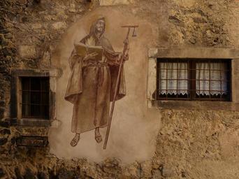 Keywords: mural painting monch middle ages medieval village village canale di tenno tenno italy