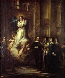 Keywords: Murillo presentando su lienzo de la Inmaculada (Museo de Bellas Artes de Sevilla).jpg Artwork Creator José Gutiérrez de la Vega y dudosamente La obra representa al pintor sevillano Bartolomé Esteban Murillo presentando su lienzo de la Inmaculada Colosal a un grupo de caballeros vestidos a la moda del siglo XVII Y la escena se desarrolla en el interior de la iglesia del convento de San Francisco de Sevilla que fue demolida en el siglo XIX ~ 1860 oil on canvas Size cm 86 105 Institution Museo de Bellas Artes Seville http //ceres mcu es/pages/Main accession number DJ0926P http //ceres mcu es/pages/Main PD-old-100 Bartolomé Esteban Murillo in art Paintings of Immaculata in Spain 19th-century paintings of Immaculata Casa Grande de San Francisco Sevilla Paintings by José Gutiérrez de la Vega Paintings attributed to José María Romero López 19th-century paintings in the Fine Arts Museum of Seville 1860s paintings in Spain