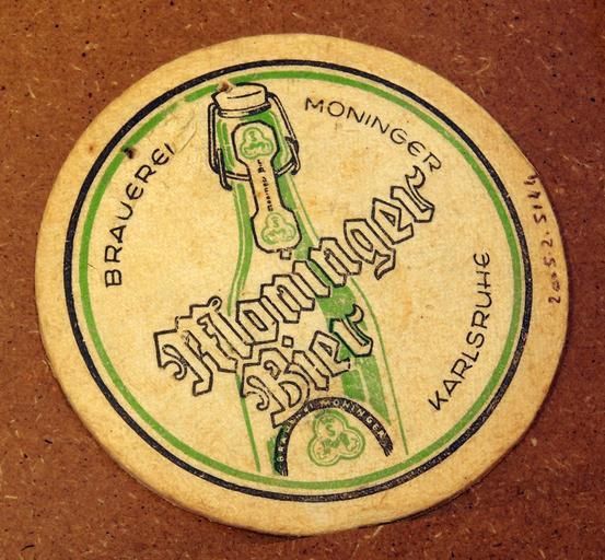 Keywords: Musée Européen de la Bière, Beer coaster pic-139.JPG Moninger Bier Photographed through glass own 2012-08-16 16 44 04 AlfvanBeem CC-zero Trademarked Musée Européen de la Bière Nostalgia by Alf van Beem Beermats