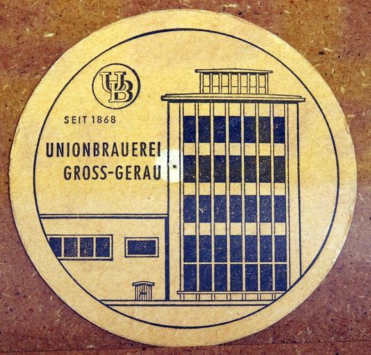Keywords: Musée Européen de la Bière, Beer coaster pic-172.JPG Unionbrauerei Gross-Gerau Photographed through glass own 2012-08-16 16 52 43 AlfvanBeem CC-zero Trademarked Musée Européen de la Bière Nostalgia by Alf van Beem Beermats