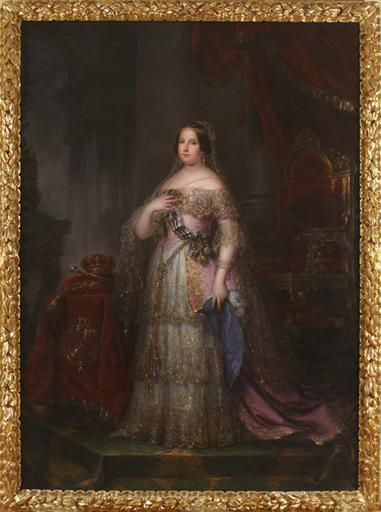 Keywords: Museo del Romanticismo - CE0871 - Isabel II.jpg Retrato de la reina Isabel II de España 1830-1904 que fue hija del rey Fernando VII y la madre de Alfonso XII 1845 oil on canvas Size cm 162 226 Institution Museo del Romanticismo http //ceres mcu es/pages/Main accession number CE0871 MR PD-old-100 cc-by-sa-4 0 Portrait paintings of Isabella II of Spain 1845 Female portrait paintings by José Gutiérrez de la Vega Paintings by José Gutiérrez de la Vega in the Museo del Romanticismo de Madrid Female portrait paintings in the Museo del Romanticismo de Madrid Painted portraits of kings of Spain in the Museo del Romanticismo de Madrid 1845 in Spain 1845 portrait paintings from Spain Male 19th-century oil portraits of standing women at full length 1845 Right hand on chest in portrait paintings 1845 Portrait paintings of women with crowns on cushions 1845 Red drapery in portrait paintings 1845 Sash of the Order of Charles III in portrait paintings 1845 Sash of the Order of Ladies of Queen Maria Luisa in portrait paintings 1845 Tassels in portrait paintings 1845 Thrones in portrait paintings 1845
