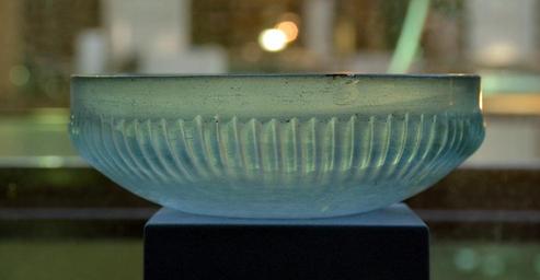 Keywords: Museo di Antichità Coppa costolata 22072015 2.jpg it Coppa costolata romana vetro pressato entre stampo finiture a mola I secolo d C Museo di Antichità di Torino 2015-07-22 18 09 26 own Vassil other versions cc-zero Ancient Roman glassware in Turin Ancient Roman glass bowls in Italy Museo di Antichità Turin Blue glass |