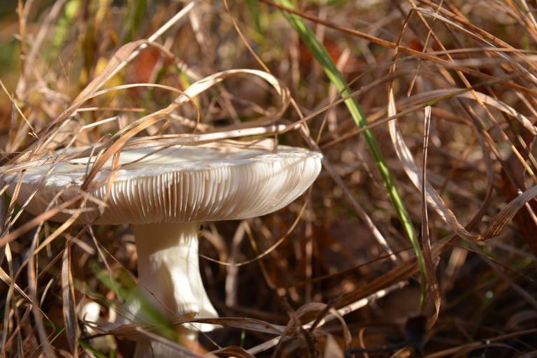 Keywords: mushroom grass an understory forest green nature dry leaves autumn branches vegetation dry grass