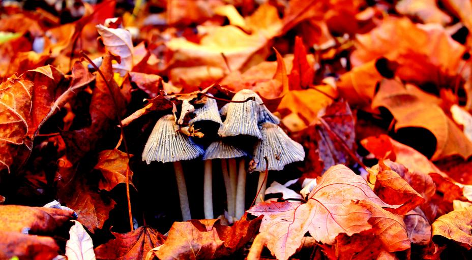 Keywords: mushroom leaves autumn golden vibrant