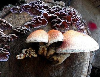 Keywords: mushrooms autumn forest nature tree stump wood autumn mood