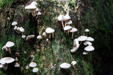 Keywords: mushrooms tree stump forest white beige moss green autumn forest autumn
