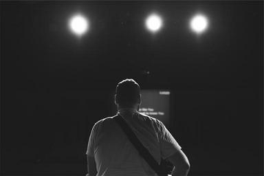 Keywords: musician music instrument guitar strap man guy people concert spotlights show entertainment