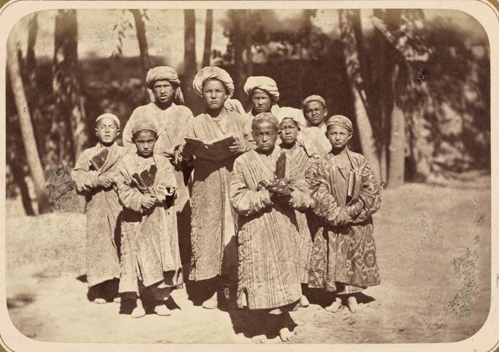 | Keywords: Muslim School. School Routine WDL10758.png Artwork ru Кун Александ Людвигович 1840 1888 гг fr Kun Aleksandr L 1840-1888 en Kun Aleksandr L 1840-1888 zh 亚历山大·L· ,1840-1888 年 pt Kun Aleksandr L 1840-1888 ar كُن، ألكسندر ل ، 1840-1888 es Kun Aleksandr L 1840-1888 ru усульманская школа Обучение в школе fr École musulmane Quotidien à l'école en Muslim School School Routine zh 穆斯林学校:学校日常景象 pt Escola mulçumana Rotina escolar ar مدرسة مسلمين روتين المدرسة ru Эта фотог афия входит в этног афическую часть <em> Ту кестанского альбома </em><em></em> всесто оннего исследования Цент альной Азии п едп инятого после того как в 1860-х годах в егионе установилось господство Российской импе ии Альбом созданный по аспо яжению гене ала Константина Пет овича фон Кауфмана 1818 1882 годы пе вого гене ал-губе нато а оссийского Ту кестана состоит из четы ех частей в шести томах «Часть а хеологическая» два тома «Часть этног афическая» два тома «Часть п омысловая» один том и «Часть исто ическая» один том Основным составителем альбома был оссийский востоковед Александ Людвигович Кун аботавший совместно с иколаем Венедиктовичем Богаевским В альбоме п едставлено около 1200 фотог афий а также а хитекту ные планы аква ельные исунки и ка ты «Часть этног афическая» включает в себя 491отдельную фотог афию на 163 листах а фотог афиях изоб ажены п едставители азличных на одов егиона листы 1 33 повседневная жизнь и итуалы листы 34 91 а также виды де евень и го одов уличные то говцы и комме ческая деятельность листы 92 163 <br> альчики; Одежда и платье; Этног афические фотог афии; Г упповые по т еты; усульмане; Фотог афические исследования; По т етные фотог афии; Школы; Студенты; Тю кские на оды fr Cette photographie est extraite de la partie ethnographique de l'<em>Album du Turkestan</em> étude visuelle complète de l'Asie centrale entreprise après que l'Empire russe prit le contrôle de la région dans les années 1860 Commandé par le général Konstantin Petrovich von Kaufman 1818 1882 premier gouverneur général du Turkestan russe l'album est composé de six volumes en quatre parties la partie archéologique deux volumes la partie ethnologique deux volumes la partie sur les métiers un volume et la partie historique un volume L'album fut essentiellement compilé par l'orientaliste russe Aleksandr L Kun assisté de Nikolai V Bogaevskii Il comporte près de 1200 photographies et inclut également des plans architecturaux des dessins à l'aquarelle et des cartes La partie ethnographique compte 491 photographies sur 163 planches montrant des individus des différentes peuplades de la région planches 1 à 33 des scènes de la vie quotidienne et des rites planches 34 à 91 ainsi que des vues de villages et de villes de vendeurs ambulants et d'activités commerciales planches 92 à 163 <br>Garçons; Vêtements et habits; Photographies ethnographiques; Portraits de groupe; Musulmans; Inventaires photographiques; Portraits photographiques; Écoles; Étudiants; Peuples turciques en This photograph is from the ethnographical part of <em>Turkestan Album</em><em> </em>a comprehensive visual survey of Central Asia undertaken after imperial Russia assumed control of the region in the 1860s Commissioned by General Konstantin Petrovich von Kaufman 1818 82 the first governor-general of Russian Turkestan the album is in four parts spanning six volumes Archaeological Part two volumes ; Ethnographic Part two volumes ; Trades Part one volume ; and Historical Part one volume The principal compiler was Russian Orientalist Aleksandr L Kun who was assisted by Nikolai V Bogaevskii The album contains some 1 200 photographs along with architectural plans watercolor drawings and maps The Ethnographic Part includes 491 individual photographs on 163 plates The photographs show individuals representing the different peoples of the region Plates 1 33 ; daily life and rituals Plates 34 91 ; and views of villages and cities street vendors and commercial activities Plates 92 163 <br>Boys; Clothing and dress; Ethnographic photographs; Group portraits; Muslims; Photographic surveys; Portrait photographs; Schools; Students; Turkic peoples zh 这张照片出自<em> 其斯 相册 </em><em> </em>的民族部分,该相册是俄罗斯 国 19 世纪 60 年代取得中亚控制 后, 手制 的 部针对该 区的综合 图像调查记录 相册由俄罗斯驻 其斯 (俄罗斯 国中亚属 的名称)首任 康斯 丁·彼得罗维奇·凡· 夫曼(Konstantin Petrovich von Kaufman,1818 82 年)将军赞助完成,共分六卷,四个部分: 古部分 (两卷); 民族部分 (两卷); 贸易部分 ( 卷)和 历史部分 ( 卷) 相册的主要编纂人是俄罗斯 方学 亚历山大·L· Aleksandr L Kun 亚历山大是 尼可莱·V·柏盖维斯基 Nikolai V Bogaevskii 的协助下完成相册的编纂 相册共含 1200 张照片,另 建筑平 图 水彩画和 图 民族部分 包括 491 张