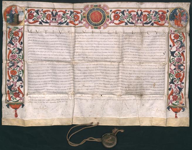 Keywords: Mutius Vitellscus, generał zakonu jezuitów, powołuje do życia Kongregację Wniebowzięcia PM przy kolegium jezuickim w Poznaniu.jpg accession number 53/1474/D8 place of creation Rzym cc-zero Kolegium Jezuickie w Poznaniu Historical documents of Poznań State Archive in Poznań Uploaded with VicuñaUploader Jesuits 1627 in Rome |