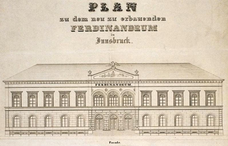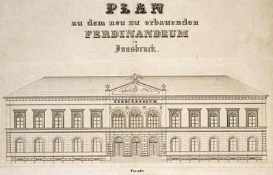 Keywords: Mutschlechner Ferdinandeum 1.jpg Anton Mutschlechner Entwurf zum ersten Gebäude des Tiroler Landesmuseums Ferdinandeum Innsbruck 1842 umgebaut 1884 “1886 Webseite Ferdinandeum Insbruck http //sammellust tiroler-landesmuseum at/page/objekte/1843b 1842 Anton Mutschlechner 1785-1846 Main building of Tiroler Landesmuseum PD-old-100 |