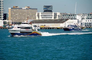Keywords: MV Jet Raider and 360 Discovery leaving Auckland.jpg MV Jet Raider and 360 Discovery MV Kawau Kat V departing Auckland ferry terminal for Waiheke Island and Gulf Harbour respectively Own 2007-09-28 Karora Shed 10 Auckland Jet Raider ship 1990 Fullers Group Catamaran ferries