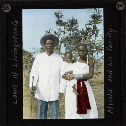 Keywords: Mvula and his family, Malawi, (s.d.) (imp-cswc-GB-237-CSWC47-LS5-1-028).jpg en <br> Mvula and his family Malawi s d Photograph of a man named Mvula with his wife and young child The family are standing together and the woman is holding the child all three are dressed mostly in white ; This belongs to a series of Church of Scotland Foreign Missions Committee lantern slides relating to Dr Robert Laws 1851-1934 the Scottish Missionary In 1875 inspired by David Livingstone 1813-1873 Laws travelled to Malawi and was involved in the foundation of the mission station of Livingstonia on the shores of Lake Nyasa During the succeeding 50 years he also established a network of hundreds of schools In 1908 Laws was elected moderator of the General Assembly of the United Free Church of Scotland Photographer Unknown Subject personal name Laws Robert 1851-1934 Filename imp-cswc-GB-237-CSWC47-LS5-1-028 tif Coverage date 1875/1925 Part of collection International Mission Photography Archive ca 1860-ca 1960 Type images Part of subcollection Photographs from the Centre for the Study of World Christianity University of Edinburgh U K ca 1900-ca 1940s Repository name Centre for the Study of World Christianity Archival file impaunpub_Volume7/1531 url Repository address The University of Edinburgh School of Divinity New College Mound Place Edinburgh EH1 2LX United Kingdom Geographic subject country Malawi Format aacr2 1 lantern slide 8 x 8 cm Geographic subject continent Africa Rights Contact the repository for details Part of series Laws of the Pioneer LS5/1 Repository email divinity-CSWC ed ac uk Subject lcsh Keyword Families Date created 1875/1925 Publisher of the digital version University of Southern California Libraries Subject aat genre group portraits Format aat lantern slides Legacy record ID impa-m68589 Access conditions http //www ed ac uk/schools-departments/divinity/research/centres/world-christianity/collections-resources File GB 237 CSWC47/LS5/1/28 1875/1925 author http //digitallibrary usc edu/cdm/ref/collection/p15799coll123/id/64652 PD-old-70-1923 Magic lantern images Images from USC Digital Library uploaded by Fæ International Mission Photography Archive ca 1860-ca 1960