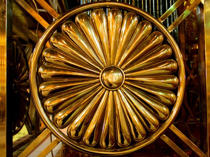 Keywords: architecture asia bâtiment birman birmanie buddhist burma golden myanmar pagodas rangoon rangoun shwedagon sky stupa temple www.wbayer.com wwwwbayercom wheel circle photo border round La pagode est située à 2 km du centre ville de Yangon, au n°1, Shwedagon Pagoda Road. Elle repose sur une plate-forme pavée de marbre de 5,6 hectares, au sommet de la colline de Singuttara, à 51 m au-dessus de la ville. Elle domine l'horizon. On y accède par des escaliers et des ascenseurs situés aux quatre points cardinaux. Deux chinthes (lions mythiques) monumentaux gardent l'entrée sud ; ils ont été offerts par roi Tharrawaddy lors de sa visite en 18418. La pagode principale se trouve au milieu d'un vaste complexe de 72 autres pagodes, pagodons, salles de prières, tazaungs, pyatthats9 et autres édifices religieux à l'architecture typiquement birmane, ainsi que de très nombreuses statues de bouddhas et de nats. Le stûpa atteint la hauteur de 98 mètres. Sa base est faite de briques recouvertes de milliers de plaques d'or. Elle est entourée d'une forêt de 64 petits pagodons10 qui forment une petite enceinte avec 4 temples plus grands situés aux points cardinaux. Sur la flèche se trouve une sorte d'ombrelle, appelée le hti en birman où sont accrochées 1065 clochettes d'or et 420 clochettes d'argent11, ainsi qu'une girouette ornée de pierres précieuses. Elle se termine par le seinbu, une petite sphère d'or incrustée de milliers de diamants12 dont une émeraude13 de 76 carats. La pagode est située à 2 km du centre ville de Yangon, au n°1, Shwedagon Pagoda Road. Elle repose sur une plate-forme pavée de marbre de 5,6 hectares, au sommet de la colline de Singuttara, à 51 m au-dessus de la ville. Elle domine l'horizon. On y accède par des escaliers et des ascenseurs situés aux quatre points cardinaux. Deux chinthes (lions mythiques) monumentaux gardent l'entrée sud ; ils ont été offerts par roi Tharrawaddy lors de sa visite en 18418. La pagode principale se trouve au milieu d'un vaste complexe de 72 autres pagodes, pagodons, salles de prières, tazaungs, pyatthats9 et autres édifices religieux à l'architecture typiquement birmane, ainsi que de très nombreuses statues de bouddhas et de nats. Le stûpa atteint la hauteur de 98 mètres. Sa base est faite de briques recouvertes de milliers de plaques d'or. Elle est entourée d'une forêt de 64 petits pagodons10 qui forment une petite enceinte avec 4 temples plus grands situés aux points cardinaux. Sur la flèche se trouve une sorte d'ombrelle, appelée le hti en birman où sont accrochées 1065 clochettes d'or et 420 clochettes d'argent11, ainsi qu'une girouette ornée de pierres précieuses. Elle se termine par le seinbu, une petite sphère d'or incrustée de milliers de diamants12 dont une émeraude13 de 76 carats.