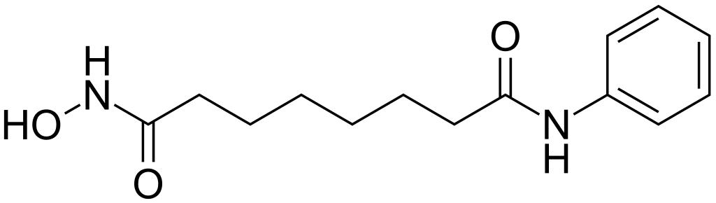 | Keywords: N1-hydroxy-N8-phenyloctanediamide 200.svg validSVG Structure of N<sup>1</sup>-hydroxy-N<sup>8</sup>-phenyloctanediamide Own 2014-04-27 Emeldir <span class signature-talk >talk</span> Chemical structure verified https //upload wikimedia org/wikipedia/commons/9/99/N1-hydroxy-N8-phenyloctanediamide_200 svg 1S/C14H20N2O3/c17-13 15-12-8-4-3-5-9-12 10-6-1-2-7-11-14 18 16-19/h3-5 8-9 19H 1-2 6-7 10-11H2 H 15 17 H 16 18 WAEXFXRVDQXREF-UHFFFAOYSA-N 149647-78-9 Synonyms <small>N-Hydroxy-N'-phenyl octanediamide MK 0683 N'-hydroxy-N-phenyloctanediamide N-Hydroxy-N'-phenyloctanediamide Octanedioic acid hydroxyamide phenylamide SAHA Suberanilohydroxamic acid Suberoylanilide Hydroxamic Acid Suberoylanilide hydroxamic acid Vorinostat Zolinza</small> PD-chem Hydroxamic acids N-substituted primary amides Un-N-substituted anilides |
