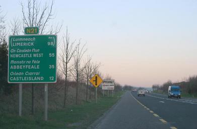 Keywords: N21near Tralee4600.jpg The N21 near Tralee in County Kerry Ireland own 2008-02-13 Sarah777 Road signs in County Kerry Roads in County Kerry National primary roads in Ireland February 2008 in Ireland Informational road signs in Ireland Crossroad warning signs in Ireland Pictures by Sarah777 |