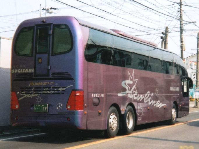 Keywords: N516 Sugizaki Kanko StarLiner rear.jpg Neoplan Starliner L Neoplan buses in Japan Sugizaki Kankō Bus Buses in Japan built in 2002 Buses in Japan photographed in 2003 Coaches in Japan Full-size buses in Japan Number 17 on buses Purple buses Tri-axle buses in Japan Buses in Odawara Kanagawa