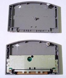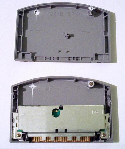 Keywords: N64-cartridge-two sides.jpg This is the standard style and color cartridge of the N64 console gaming system taken apart Photo is of the two sides of the cartridge It uses two screws to hold it together; however these screws are a proprietary design so I used brute force to open it What I do for Wikimedia Commons Author mboverload Date Taken and uploaded on 2/25/2005 mboverload Nintendo 64 cartridges Taken with HP PhotoSmart 318 |
