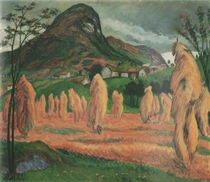 Keywords: N Astrup-Kornstaur.jpg Artwork creator Nikolai Astrup 1920 Oil canvas object history credit line accession number Øystein Løge Tradisjon og overskridelse - Nikolai Astrup - Et utvalg av Nikolai Astrups kunst samlet av Jon Chr Brynildsen Henie-Onstad kunstsenter 1994 ISBN 82-90955-11-1 PD-old-auto-1923 1928 20th-century landscape paintings of Norway Paintings by Nikolai Astrup Haystacks in art Villages in art 20th-century oil on canvas paintings 20th-century paintings location missing Tradisjon og overskridelse - Nikolai Astrup exhibition Haymaking in Norway |