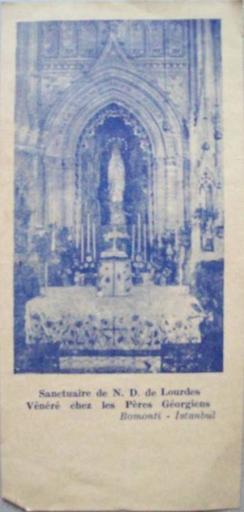 Keywords: N. D. Lourdes prayer card.jpg en Prayer card invitation card of Georgian Church in Bomonti Istanbul 20th century prayer card Author Early 20th century Notre Dame de Lourdes Istanbul PD-old