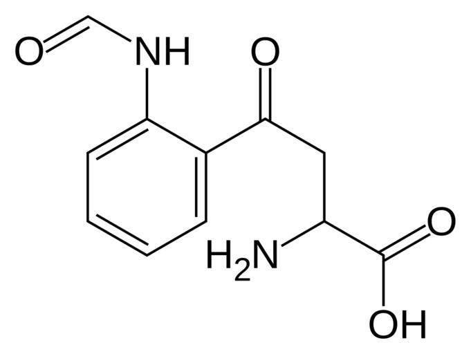 Keywords: N-formylkynurenine.svg Skeletal formula of N<nowiki>'</nowiki>-formylkynurenine Created using http //www acdlabs com/download/chemsk html ACD/ChemSketch 10 0 and Inkscape own 2007-05-30 Fvasconcellos 02 32 31 May 2007 UTC Amino acids Phenones Intermediates Formamides |