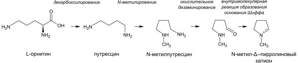 N-methylpyrrolinium biosynthesis ru.svg (785x165)