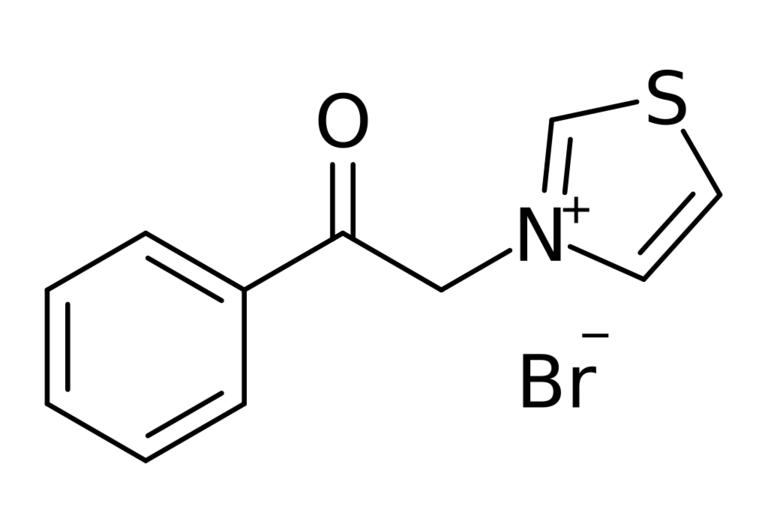 Keywords: N-phenacylthiazolium bromide.svg Chemical structure of N-phenacyl thiazolium bromide Own 02 30 28 January 2016 UTC Ed Edgar181 Bromide salts of organic compounds Thiazolium ions Acetophenones