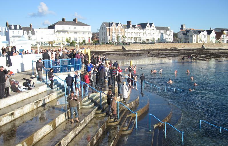| Keywords: Nagegie d'Noué au Hâvre des Pas Jèrri 25 d'Dézembre 2010 02.jpg Lé 25 d'Dézembre 2010 un fliotchet d'monde lus bangnîtent s'lon la couôteunme dans la bangnérêsse du Hâvre des Pas Saint Hélyi Jèrri The traditional Christmas Day swim at Havre des Pas bathing pool brought a crowd of swimmers supporters and spectators out on 25th December 2010 in Saint Helier Jersey own photo 25 dé Dézembre 2010 Man vyi Own work all rights released Public domain Christmas 2010 in Jersey 25 December 2010 in Saint Helier Jersey People of Jersey in 2010 Swimming in Jersey Winter swimming 2010 in swimming Havre des Pas bathing pool Coasts of Saint Helier Jersey |