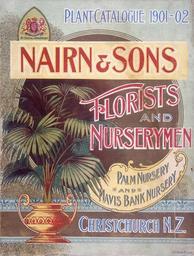 | Keywords: text sign Shows arrangement of text and decoration, with potted palm at left. Some decorative art nouveau elements. Inscriptions: Inscribed - Recto - bottom right: ChCh Press Co Litho.. Quantity: 1 colour art print(s) on cover of sales catalogue.. Physical Description: Lithograph, coloured 241 x 184 mm. Nairn & Sons Ltd. Nairn and Sons, florists and nurserymen, palm nursery and mavis bank nursery, Christchurch, N.Z. :Plant catalogue [cover] 1901-02.. [Ephemera and horticulture sales catalogues issued by New Zealand plant nurseries, 1900-1909].. Ref: Eph-A-HORTICULTURE-Nairn-1901-cover. Alexander Turnbull Library, Wellington, New Zealand. natlib.govt.nz/records/23215611 Shows arrangement of text and decoration, with potted palm at left. Some decorative art nouveau elements. Inscriptions: Inscribed - Recto - bottom right: ChCh Press Co Litho.. Quantity: 1 colour art print(s) on cover of sales catalogue.. Physical Description: Lithograph, coloured 241 x 184 mm. Nairn & Sons Ltd. Nairn and Sons, florists and nurserymen, palm nursery and mavis bank nursery, Christchurch, N.Z. :Plant catalogue [cover] 1901-02.. [Ephemera and horticulture sales catalogues issued by New Zealand plant nurseries, 1900-1909].. Ref: Eph-A-HORTICULTURE-Nairn-1901-cover. Alexander Turnbull Library, Wellington, New Zealand. natlib.govt.nz/records/23215611 |