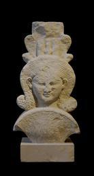 | Keywords: Naïskos uræus chypre Louvre AM 2755.jpg Chapiteau sculpté sur une ombelle de papyrus une tête hathorique est surmontée d'un naïskos abritant un uræus Antique capital egyptian/greek like Chypro-archaïque II milieu Vème siècle avant J -C Cypro-archaïc II middle of the 5th century BC Calcaire Limestone 81 H ; 44 LA ; 24 EP Museum Louvre Département des Antiquités Orientales Aile Sully rez-de-chaussée salle 21 Department of Oriental Antiquities Sully ground floor room 21 object history proviendrait de Paphos CHYPRE from Paphos CYPRUS credit line Mission Duthoit 1865 accession number AM 2755 Jebulon 2010 other versions PD-old ImageNote 1 239 2339 1590 808 2049 3820 2 Papyrus ImageNoteEnd 1 ImageNote 2 474 1267 1137 1032 2049 3820 2 Hathoric head ImageNoteEnd 2 ImageNote 3 743 768 618 499 2049 3820 2 Naïskos ImageNoteEnd 3 ImageNote 4 947 833 214 384 2049 3820 2 Uræus ImageNoteEnd 4 QualityImage Hathoric capitals Naiskoi Uraeus Ancient Greek sculptures in Cyprus Near Eastern Antiquities in the Louvre - Room 21 Quality images by Jebulon Quality images of the Louvre |