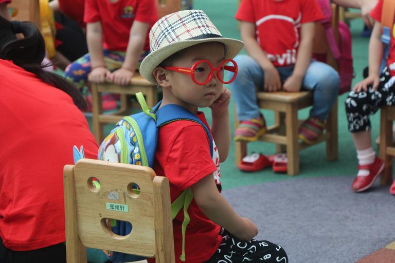 Keywords: naive cute children activities girls sat chair glasses china funny nursery boy