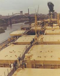 Keywords: sunderland shipbuilding ship naming ceremony shipnamingceremony cargo ship cargoship north sands sunderland northsandssunderland shipyard ore-bulk-oil carrier orebulkoilcarrier yellow colour photograph colourphotograph industrial heritage industrialheritage still water 'naess crusader' naesscrusader guest arriving guestarriving june 1973 june1973 launched december 1972 december1972 maritime workers river wear riverwear sunderland history fair sunderlandhistoryfair 7 june 2014 7june2014 bolts path steel cylindrical pipe wheel barrier platform bridge roof wall crane pathway trousers hat dress shirt tie shoes blouse line bank joinery interesting outdoor Guest arriving on board the 'Naess Crusader' for the naming ceremony, June 1973. She was launched in December 1972 at North Sands, Sunderland (TWAM ref. DS.JLT/4/PH/2/5) Tyne & Wear Archives is proud to present a selection of images from its Sunderland shipbuilding collections. The set has been produced to celebrate Sunderland History Fair on 7 June 2014. It's a reminder of the thousands of vessels launched on the River Wear and the many outstanding achievements of Sunderland’s shipyards and their workers. These photographs reflect Sunderland’s history of innovation in shipbuilding and marine engineering from the development of turret ships in the 1890s through to the design for SD14s in the 1960s. The Sunderland shipbuilding collections are full of fascinating stories. Some of these are represented in this set, such as the ‘Rondefjell’, launched in two halves on the River Wear by John Crown & Sons Ltd and then joined together on the River Tyne. The set also shows the vital part that Sunderland’s shipbuilding industry played during the First World War. William Doxford & Sons Ltd built Royal Naval destroyers such as HMS Opal, which served in the Battle of Jutland, while other yards constructed cargo ships to help keep these shores supplied. (Copyright) We're happy for you to share these digital images within the spirit of The Commons. Please cite 'Tyne & Wear Archives & Museums' when reusing. Certain restrictions on high quality reproductions and commercial use of the original physical version apply though; if you're unsure please email archives@twmuseums.org.uk Guest arriving on board the 'Naess Crusader' for the naming ceremony, June 1973. She was launched in December 1972 at North Sands, Sunderland (TWAM ref. DS.JLT/4/PH/2/5) Tyne & Wear Archives is proud to present a selection of images from its Sunderland shipbuilding collections. The set has been produced to celebrate Sunderland History Fair on 7 June 2014. It's a reminder of the thousands of vessels launched on the River Wear and the many outstanding achievements of Sunderland’s shipyards and their workers. These photographs reflect Sunderland’s history of innovation in shipbuilding and marine engineering from the development of turret ships in the 1890s through to the design for SD14s in the 1960s. The Sunderland shipbuilding collections are full of fascinating stories. Some of these are represented in this set, such as the ‘Rondefjell’, launched in two halves on the River Wear by John Crown & Sons Ltd and then joined together on the River Tyne. The set also shows the vital part that Sunderland’s shipbuilding industry played during the First World War. William Doxford & Sons Ltd built Royal Naval destroyers such as HMS Opal, which served in the Battle of Jutland, while other yards constructed cargo ships to help keep these shores supplied. (Copyright) We're happy for you to share these digital images within the spirit of The Commons. Please cite 'Tyne & Wear Archives & Museums' when reusing. Certain restrictions on high quality reproductions and commercial use of the original physical version apply though; if you're unsure please email archives@twmuseums.org.uk |