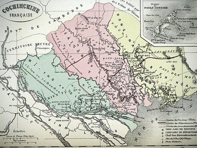 | Keywords: NamKy1865.jpg vi Bản đồ 3 tỉnh miền đông Nam Kỳ năm 1865 vùng thuộc Pháp COCHINCHINE FRANCAISE Biên Hòa Gia Định Định Tư ng http //www ebay ca/itm/COCHINCHINE-FRANCAISE-French-Map-c1865-HAND-COLORED-Atlas-Universel-DHistoire-/370997235684 P Bouillet 1865 PD-Art Old maps of Vietnam Cochinchina |