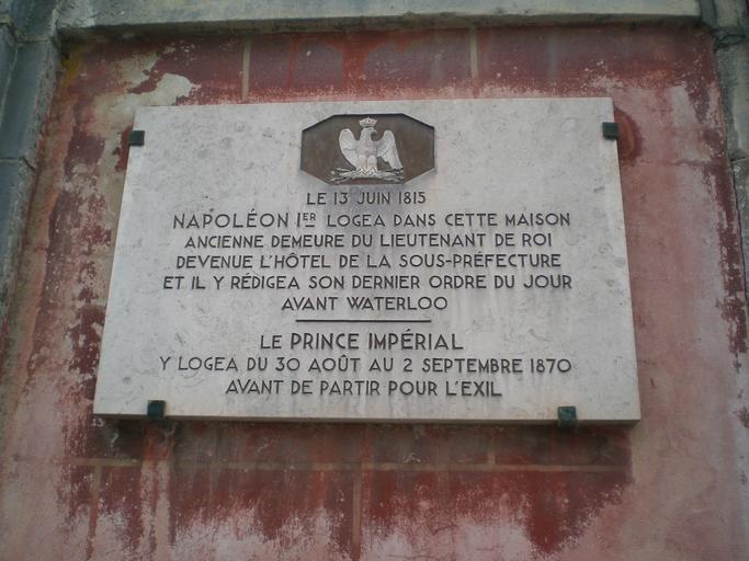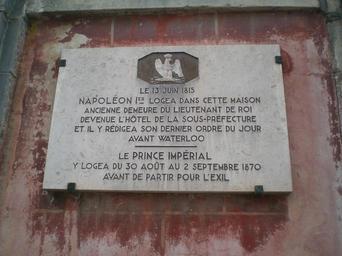Keywords: Napoleon avesnes sur helpe.JPG fr le 13 juin 1815 Napoleon 1er logea dans cette maison ancienne demeure du lieutenant de roi et il y redigea son dernier ordre du jour avant Waterloo <br> Le prince impérial y logea du 30/08 au 02/09/1870 avan de partir pour l'exil own Chatsam 2008-08 Avesnes-sur-Helpe Plaques to Napoleon I of France Plaques in Nord Plaques referencing 1815 Plaques referencing 1870 13 June Napoléon Eugène Prince Imperial |